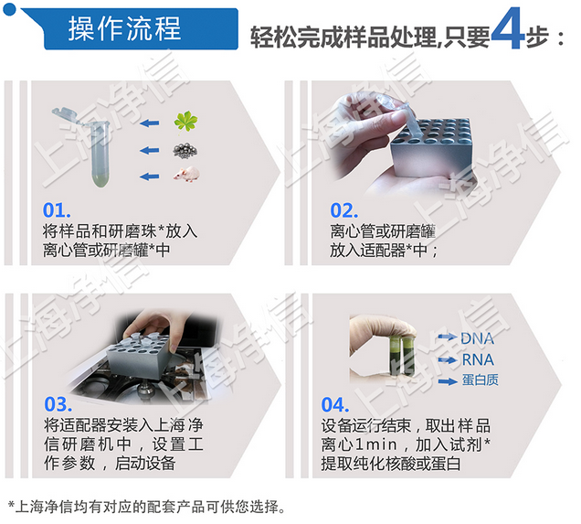 * 可以選用配套的jingxin試劑盒可以快速、穩(wěn)定、批量的提取樣品中DNA/RNA蛋白質(zhì)等